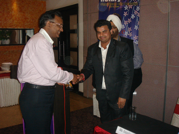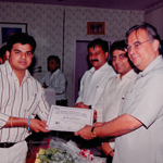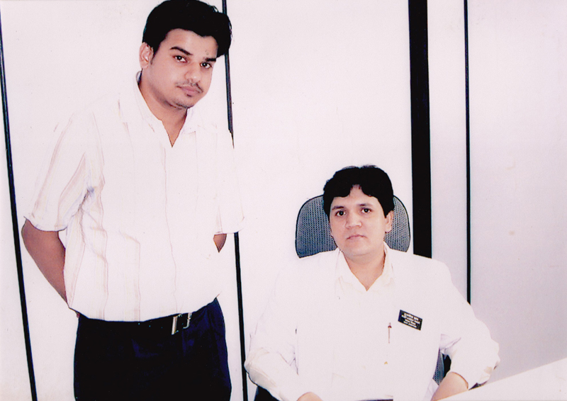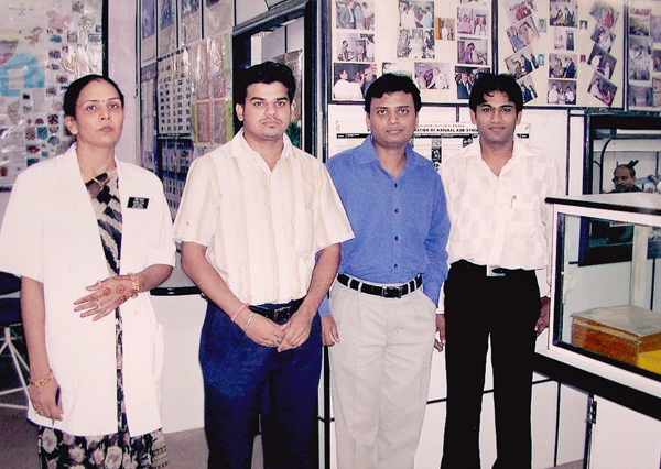 Sandeep with MamMeenu Brijesh Vayas (at left), Sir Gagan Chaudhary (In blue Shirt) and Sir Chaman Golecha (at right) in 2006 |